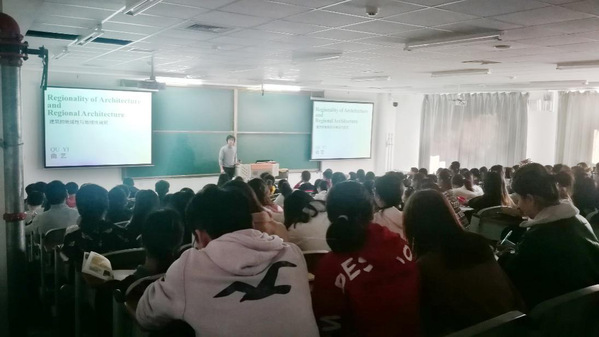曲艺老师以政治、生活、文化等多角度为出发点,列举了诸多国际建筑大师的作品,如萨伏伊别墅、西格拉姆大厦、范斯沃斯住宅等,反映了在国际化浪潮的背景下,建筑正脱离地域文化而存在的问题。同时曲艺老师还向师生概述了地域建筑的基本概念和地域性建筑的历史,指明地域性是建筑的基本属性之一,建筑与当地的风土人情密切相关。