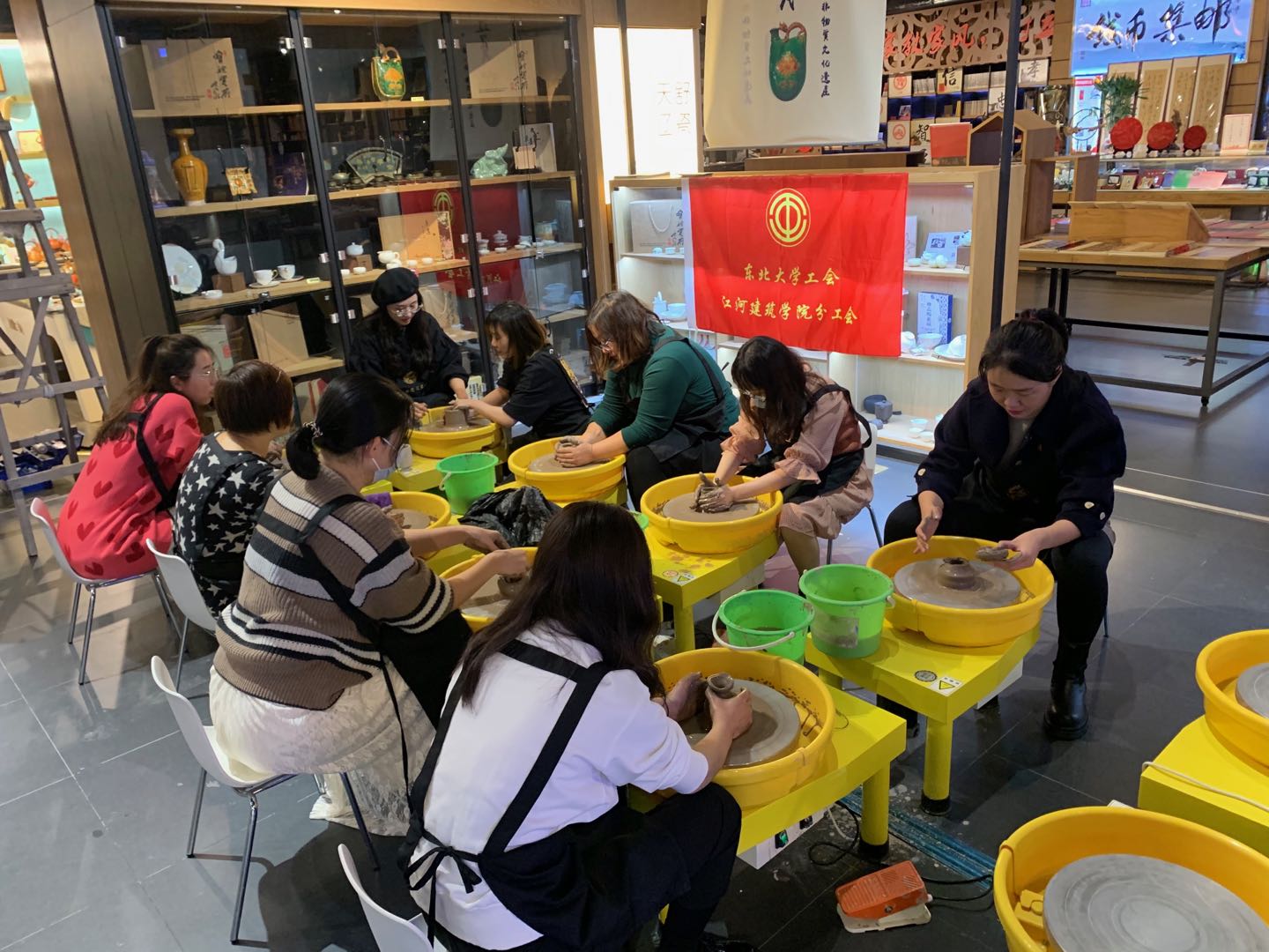 11月11日下午,跑得快玩法 分工会于玖伍文化城组织开展了以“体验陶艺制作,感受辽瓷文化”为主题的工会活动。跑得快玩法 多名教师参与了本次活动。