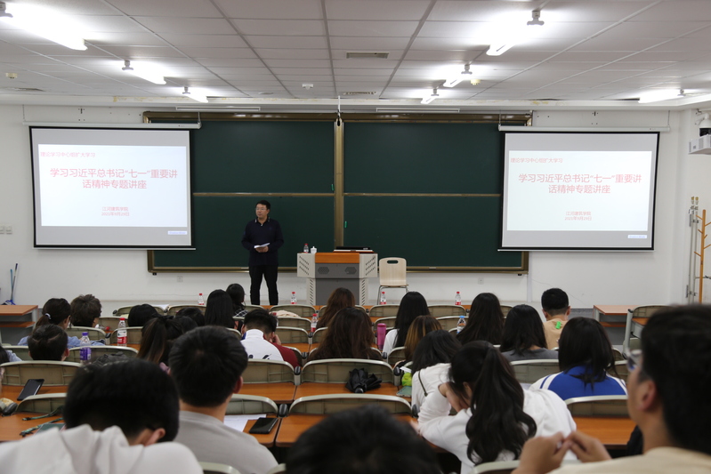 为深入学习贯彻习近平总书记“七一”重要讲话精神,促使广大师生全面、准确、深入地了解“七一”重要讲话精神的重大意义、主要内容和丰富内涵,大力弘扬伟大建党精神,传承光荣传统,赓续红色血脉,引导广大师生把“七一”重要讲话精神学习成效转化为干事创业的工作实效,9月29日下午,校宣讲团成员、党委组织部副部长兼党委教师工作部副部长姜玉原受邀在建筑学馆A402室作专题宣讲报告。报告会由跑得快玩法 党委书记安立鸿主持,跑得快玩法 教职工和学生党员100余人参加报告会。