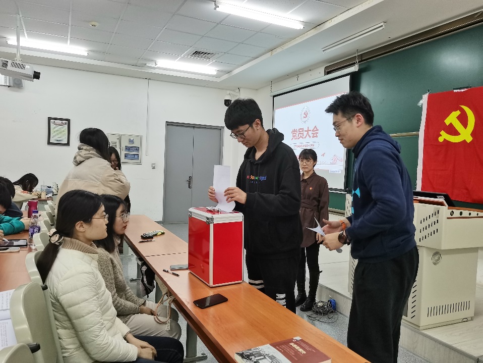 会后,新一届支委会第一次全体会议召开,经新一届支委会推选,李瑾同志当选为党支部书记,孟伊宁同志当选为党支部副书记。委员分工如下:寇雅婷负责组织工作,齐瑞欣负责宣传工作,朱炳昱负责纪检工作。