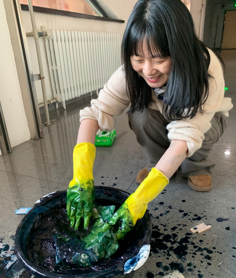 活动在周琴老师对蜡染工艺的讲解中开始,大家开始跃跃欲试,对自己的作品充满了期待。在现场,老师们热情洋溢、兴致勃勃,她们拿出平时做学问的热情,每个人都认真地制作自己的专属作品,尽情体验手工制作的喜悦,通过绘制底稿、以蜡作画、染色固色、脱蜡晾晒,老师们制成了一幅幅生动的作品。