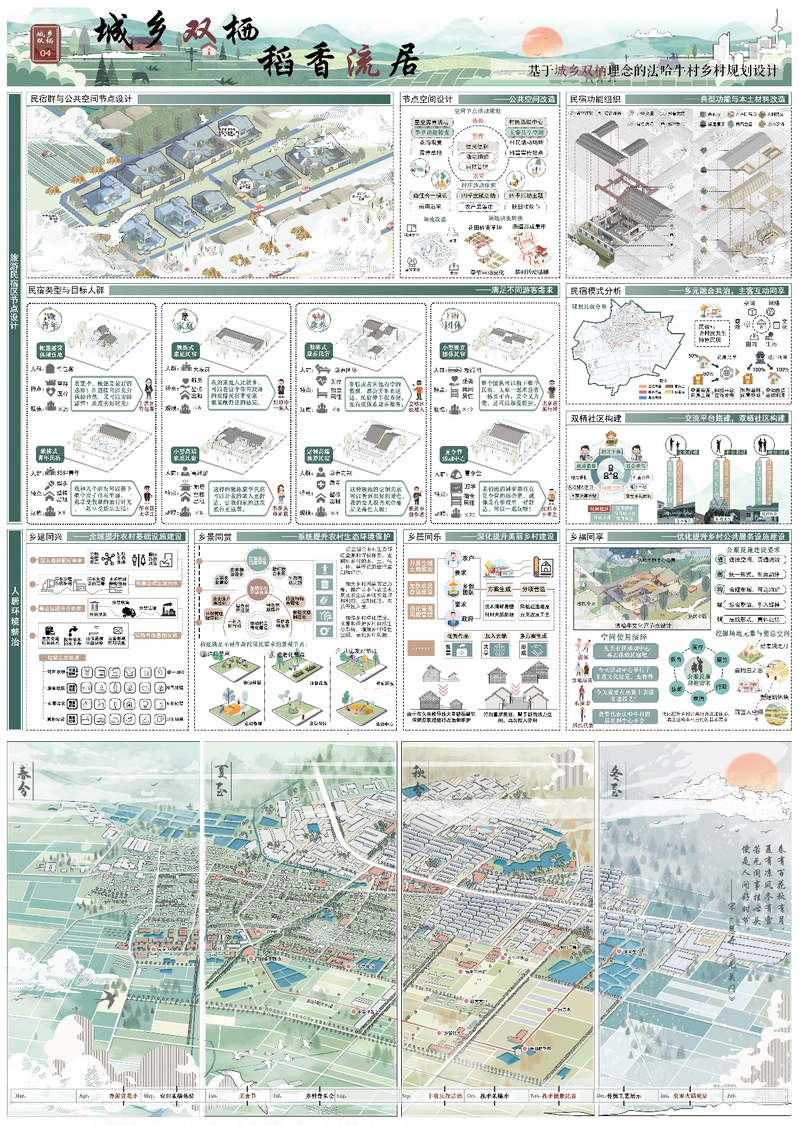 作品名称:城乡双栖,稻香流居——基于城乡双栖理念的法哈牛村乡村规划设计
