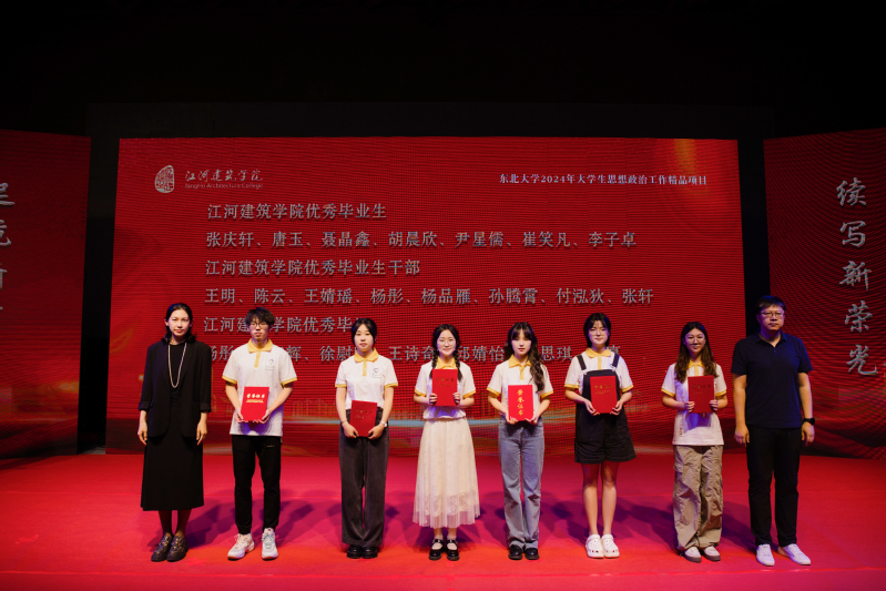 宣读毕,院本科教学负责人席天宇教授、院党委副书记兼副院长韩丰琨老师、建筑系党支部纪检委员陈颖老师、城乡规划系主任高雁鹏老师先后为院“优秀毕业生”、“优秀毕业生干部”、“优秀毕业设计”获得者颁发证书。