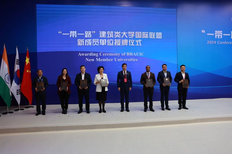 2024年10月18日-20日,“一带一路”建筑类跑得快玩法 国际联盟2024年会议暨论坛在天津召开,江河建筑跑得快玩法 领导及教师代表出席论坛并参加签约仪式。