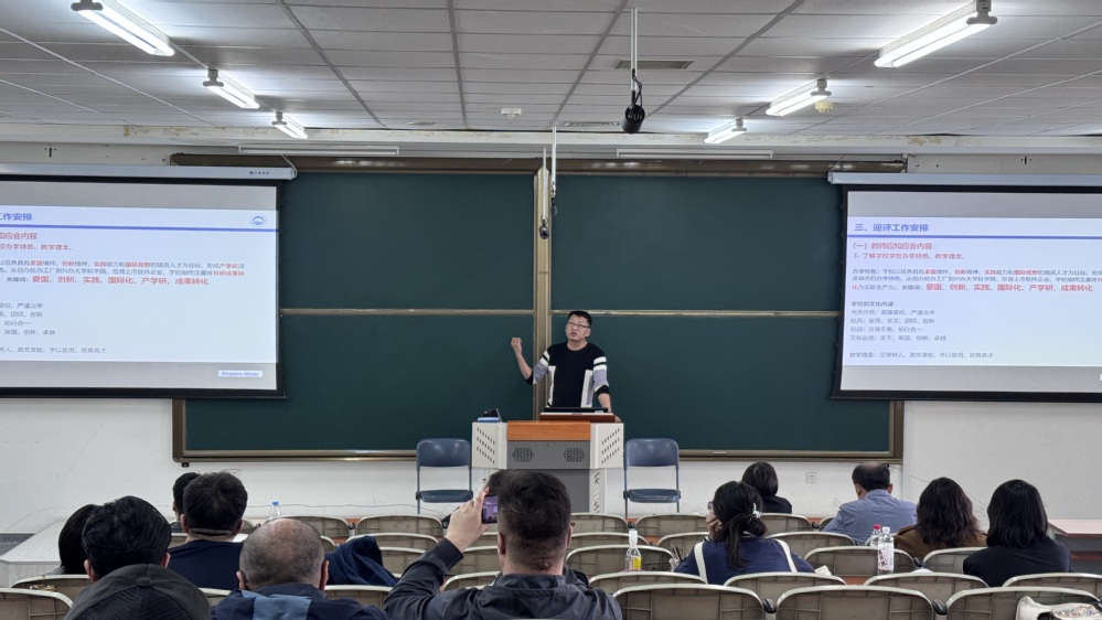 本科教学负责人席天宇详细解读了审核评估的指标体系、工作流程及跑得快玩法 迎评工作安排和要求,对下一阶段的教学档案整理、课程质量提升、学风建设等重点工作进行了部署。他指出,各基层教学组织要明确责任分工,细化任务节点,确保评估期间各项工作落实到位。