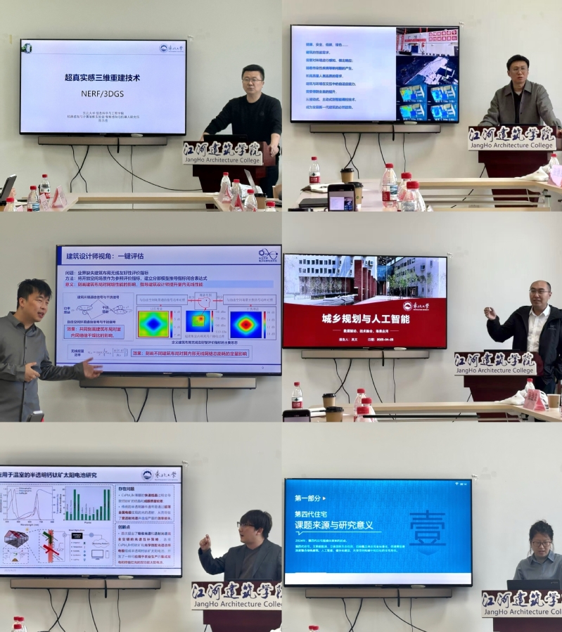 建筑、规划学科团队呈现多维度融合实践,李绥教授系统解析“建筑环境感知与智能调控”技术体系,结合实际应用案例表明建筑+控制科学工程的协同潜力。吴文副教授展示了大数据时代“城乡规划与人工智能”的技术融合,探讨了信息技术在算法处理、学科教学、数据整合的多维度场景应用;张然老师则聚焦“第四代住宅”研究,展望未来建筑生态化与智能化的前景。