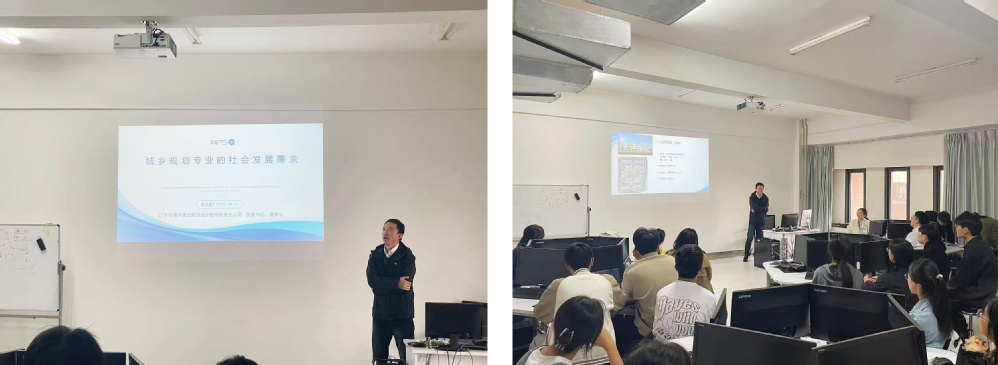 此次活动的主讲嘉宾是辽宁省城乡建设规划设计院有限责任公司党委书记、董事长张立鹏,他为同学们带来题目为城乡规划专业的社会发展需求的主题报告。